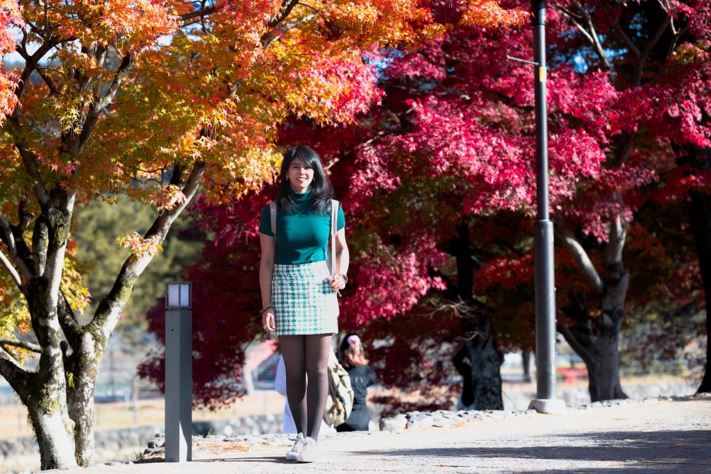 Uji: We went quite early to Nara which is why we managed to finish there before lunch. Without further wait we decided to take the train to Uji. Now Uji is not a conventional tourist place but for me one word was enough to get me there, the word being “Matcha”. Matcha comes from the Kyoto region in Japan and more specifically from Uji. Apart from being the Matcha haven, Uji is a quaint, picturesque town where you can easily spend atleast half a day. We even took a Matcha making workshop and enjoyed it thoroughly. The food was delicious, autumn colours were bursting everywhere. Uji encapsulates the essence of Japanese tea culture, providing a serene retreat.