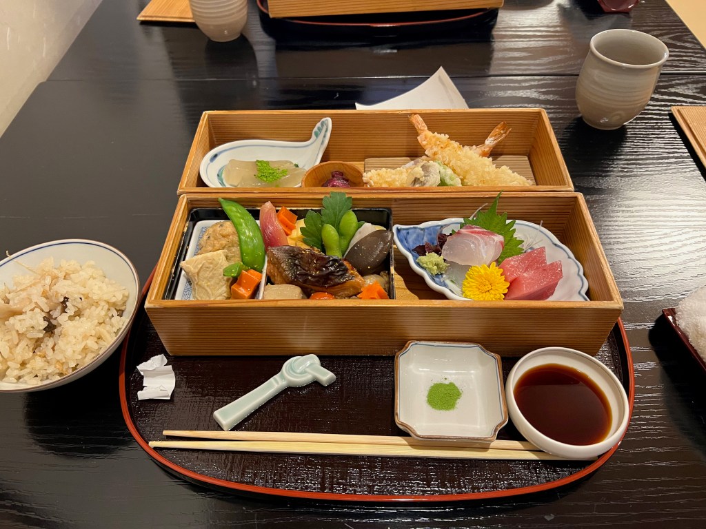 The 3rd day was our last day in Kyoto and we did have quite a few things left to see. We started quite early in the morning as we had a lot of ground to cover. Our first stop was the maginificent Arashiyama Bamboo Forest. As sunlight filters through the dense grove, the rustling leaves produce a gentle symphony. The path leads to iconic sights like the Iwatayama Monkey Park and the enchanting Togetsukyo Bridge. It is definitely a must visit but to avoid tourist times try to come early in the morning or in the evening. Our next stop was the beautiful Kinkaku-Ji. The Zen Buddhist temple reflects in the serene waters of Kyoko-chi Pond, creating a beautiful scene. Originally built as a shogun’s retirement villa, Kinkaku-ji showcases intricate details, meticulously maintained gardens, and a harmonious integration of nature and art. After Kinkaku-Ji we went straight to our most favourite one in Kyoto the Ryoan-Ji temple. Renowned for the iconic Rock Garden, a composition of 15 rocks surrounded by meticulously raked gravel, the temple exudes tranquility. No matter from what angle you count the rocks you can never see 15 of them. According to Zen, this is how life is. It is never perfect and we must always accept what is. After sitting in the rock garden for sometime we decided to roam around the beautiful garden at Ryoan-Ji. Visiting Ryoan-Ji was definitely my favourite part of the day. After Ryoan-Ji we decided to head to Nishiki Market for lunch. After lunch, we took the train to Fushimi Inara. Since we arrived quite late in the day, it was overcrowded. But we were ready for that as we had to choose between the sights we really wanted to see peacefully. It unveils a mystical realm where vermilion torii gates meander through lush forests. Beyond the iconic path lies a sanctuary of fox statues, guardians of the sacred Mount Inari. This Shinto haven invites explorers to traverse a tapestry of spiritual energy, where nature and divine presence harmonize.